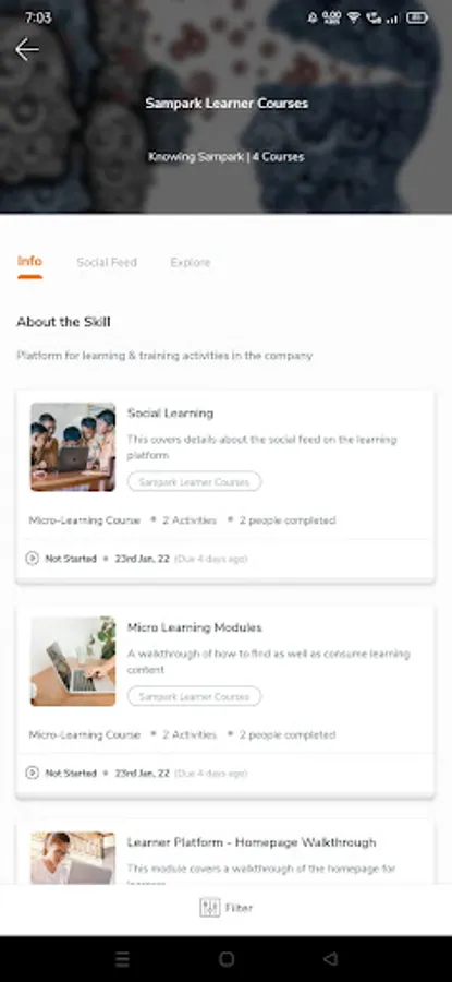 1) Marketplace of Enterprise Learning Experiences: IOC Sampark brings together all learning experiences, from traditional ones like classroom / instruction-led training, modern ones like live instructor-led training to new-age experiences like micro-learning and MOOC-based learning in a single unified platform, providing integrated analytics across all of them.