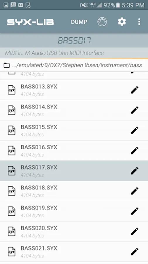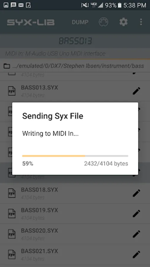 Syx-Lib lets you send and receive system exclusive (or simply SysEx) messages to and from class-compliant* USB MIDI devices. Simply select a file containing SysEx data to send to a connected device. Or start a manual dump to save incoming SysEx messages.