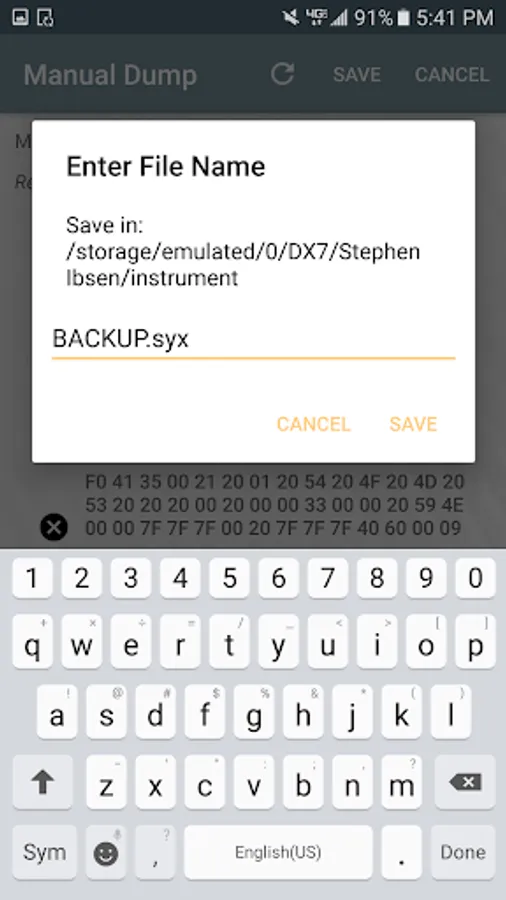 • Press "Save" to stop listening to the output port and save the displayed SysEx messages to a single file.