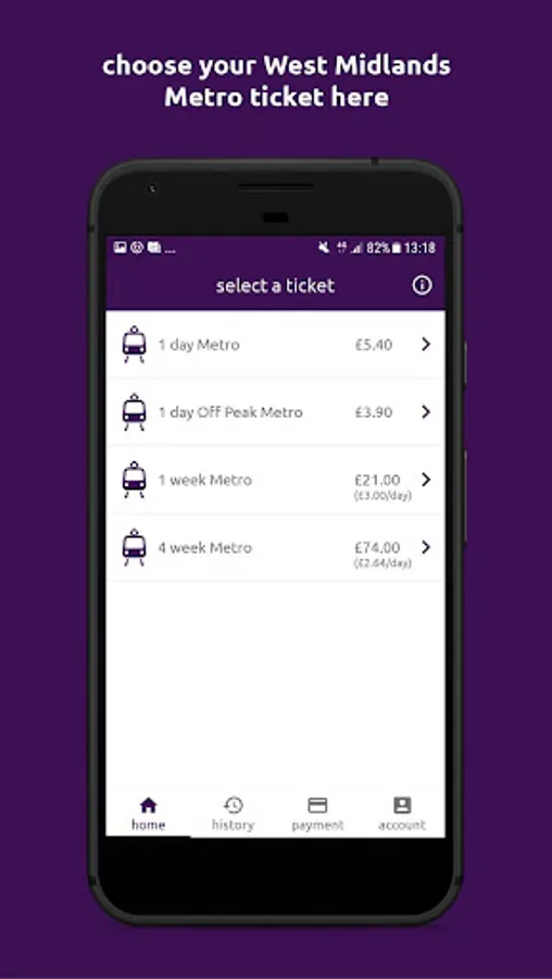 • Purchase 1 day, 1 day off-peak, 1 week and 4 week West Midlands Metro tickets
