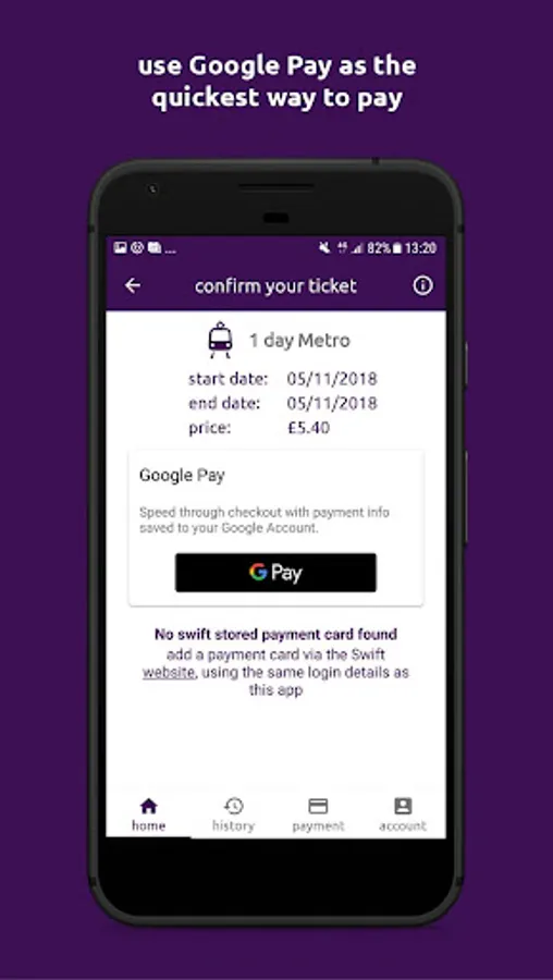 The Swift on Mobile app brings West Midlands Metro (tram) tickets directly to your phone. Simply select, pay and save your ticket to Google Pay.