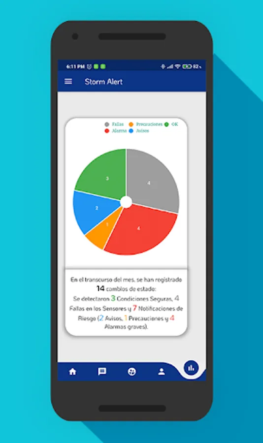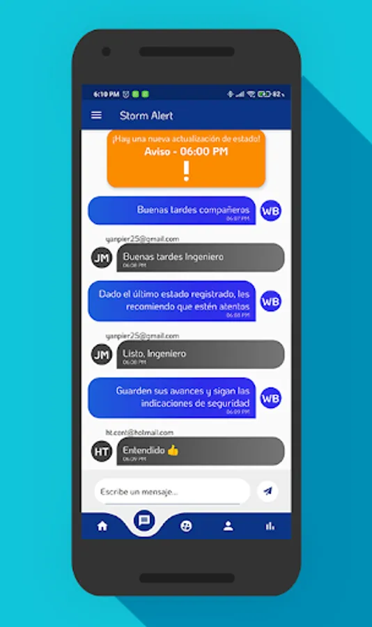 Once inside, you have access to a group chat with all Storm Alert members, a summary of the current weather status and metrics of recent changes in the weather.