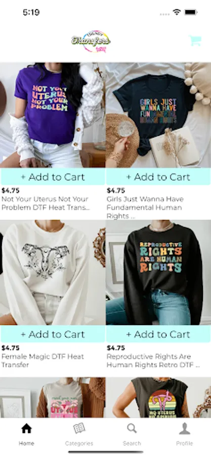 We sell ready to press heat transfers for apparel, hats, mugs, bags, etc. We also sell custom vinyl stickers. We will be adding direct to film transfers as well.