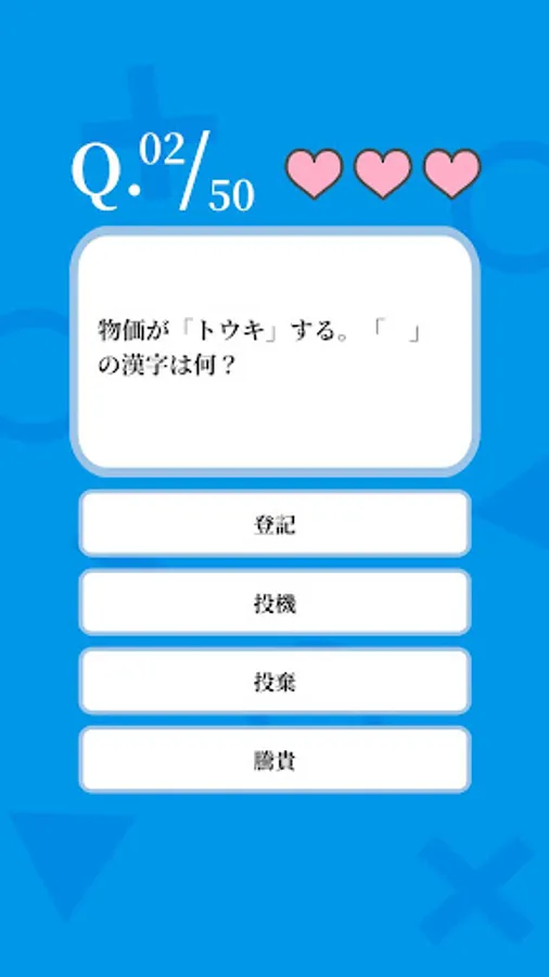 The questions are kanji, four-letter idioms, proverbs, sports, music, geography, arithmetic, entertainment, culture, and more!