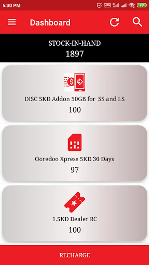 Ooredoo Dealer mobile application for sub-dealers shops, used for selling Ooredoo products