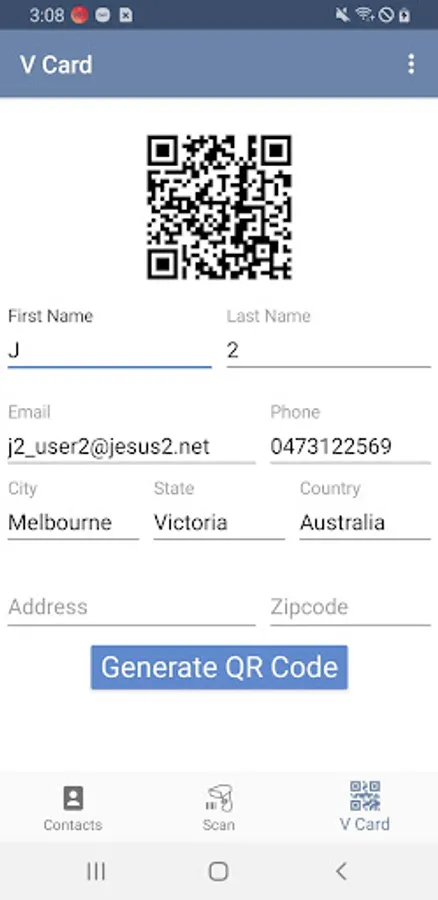 *Generator predefine V-Card QR codes, with basic informations like email, phone and address etc