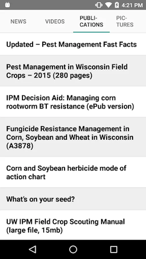 This app allows you to read news articles, view videos, download publications, and access pictures which will aid you in adapting Integrated Pest Management (IPM) practices to your agricultural operation.