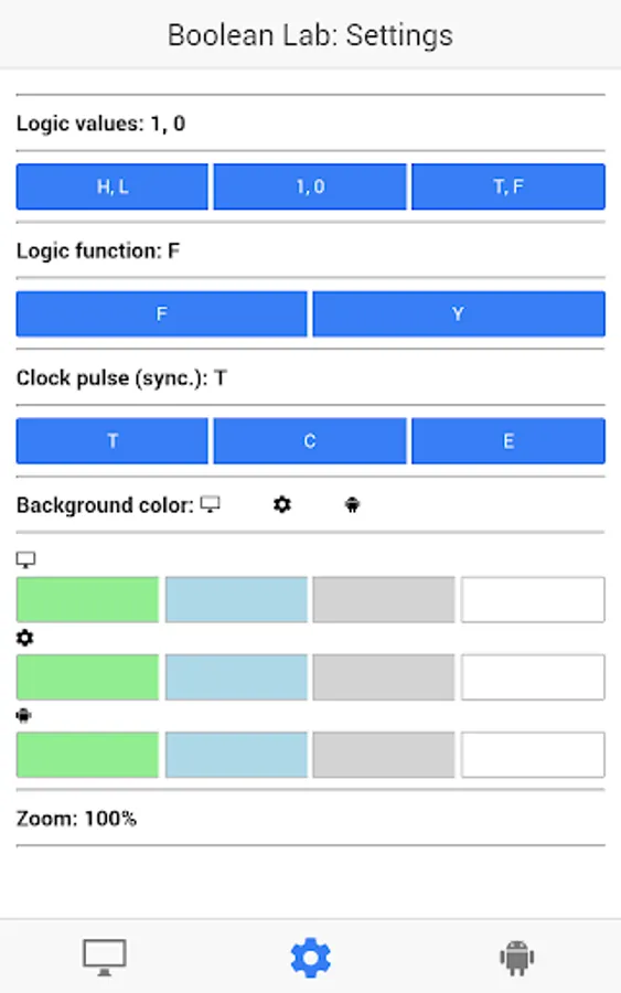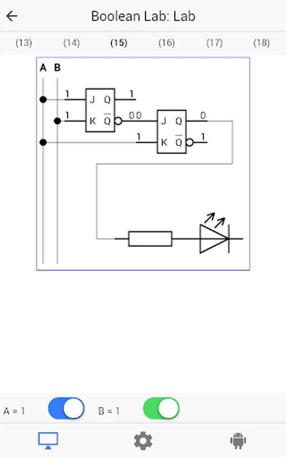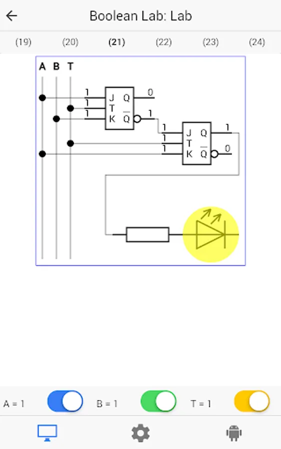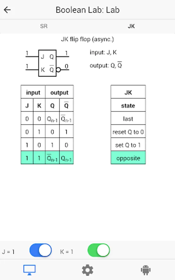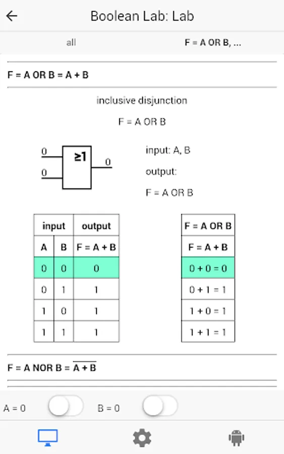 Interactive and visual explanation of the boolean variables, logic functions and their behavior. For each logic function is shown its type, truth table and gate. Everything is interactive - input variables change is immediately reflected in the truth table and on the input(s) and output(s) of gates.