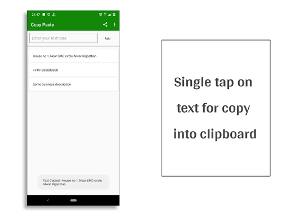 Copy paste app helps in copy and paste of frequently used text in just 1 tap.