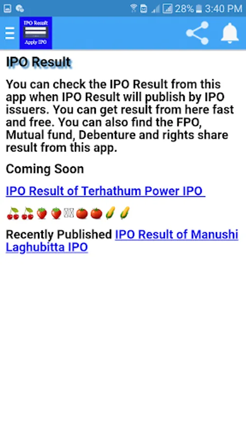 It will help to increase the Nepali share market as well as Mero Share market. Please you need to wait for data update period, but we will try to provide result immediately the IPO result published on that and this date. If you difficult find your result, please let us know. We also share the IPO opening and IPO result published alert for you without any cost if you are the user of this IPO result app.