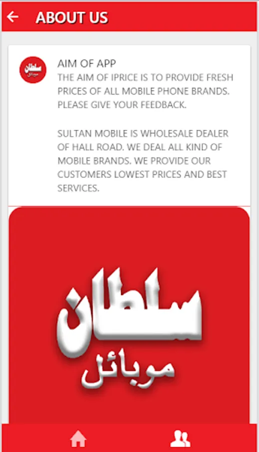 The aim of Sultan is to provide fresh prices of all mobile phone brands available in Pakistan.We also sell mobile on a single call. The major bands registered in our app are: SAMSUNG, MICROSOFT NOKIA, QMOBILE, LENOVO, HUAWEI, RIVO, APPLE IPHONE, LG, HTC, SONY, HAIER, OPPO, iNEW, GFIVE.