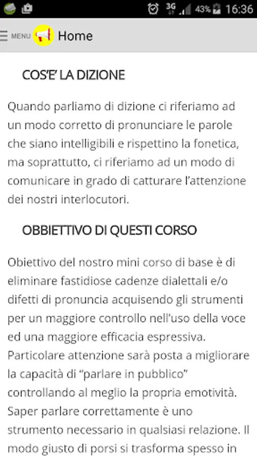 The aim of our mini basic course is to eliminate annoying dialect cadences and / or speech defects by acquiring the tools to better control the use of the voice and greater expressive effect. Particular attention will be given to improving the ability to "speak in public" by controlling the most of their emotions. Knowing how to speak correctly is a necessary tool in any relationship. The right way to ask yourself often turns into a winning both in professional life and in private life. It is also important the pitch of the voice. Many people, who have learned to use the appropriate words, often fail to reach the right intonation.