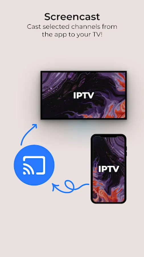 Press one button to broadcast IPTV channel from your phone to TV using screencast.