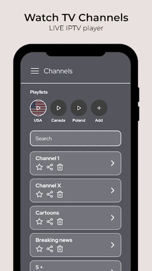 Add an unlimited number of channels and playlists from local m3u files or URLs. You can also remove individual channels from your playlist, IPTV Player: WorldwideTV provides the freedom to customize your entertainment experience. You can also add an icon and your name to each playlist for more convenient use.