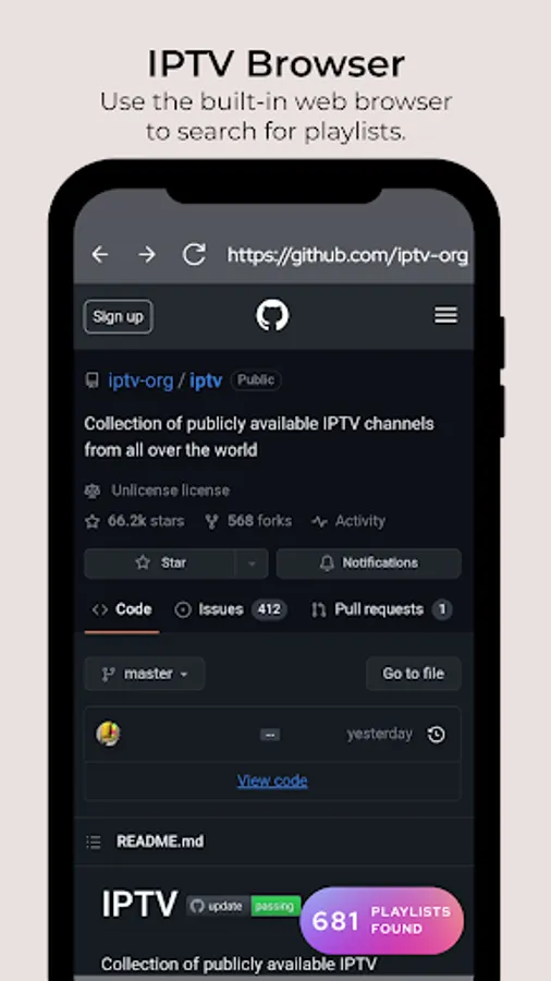 Discover new content with our built-in browser. Effortlessly browse the web, find exciting new m3u playlists, and import them directly into the app.