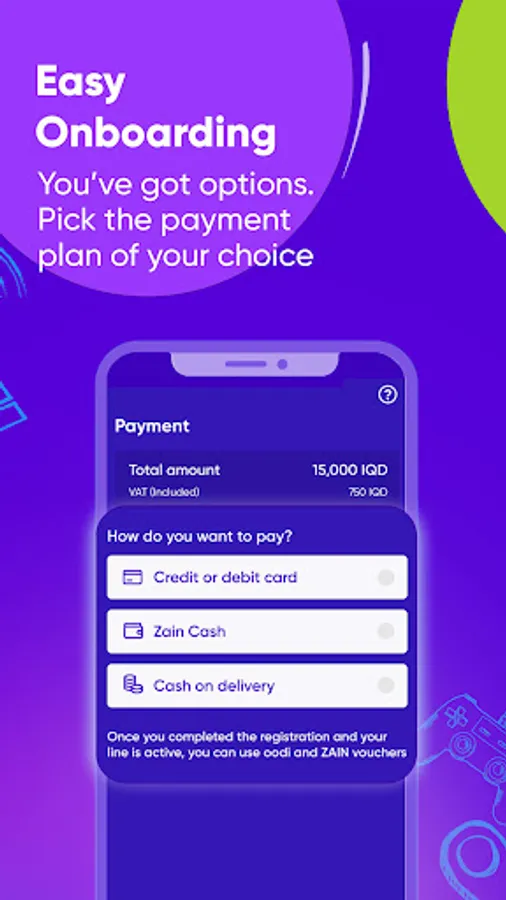 - Choose your payment options: ZainCash, a Zain Recharge Card, or a Credit Card