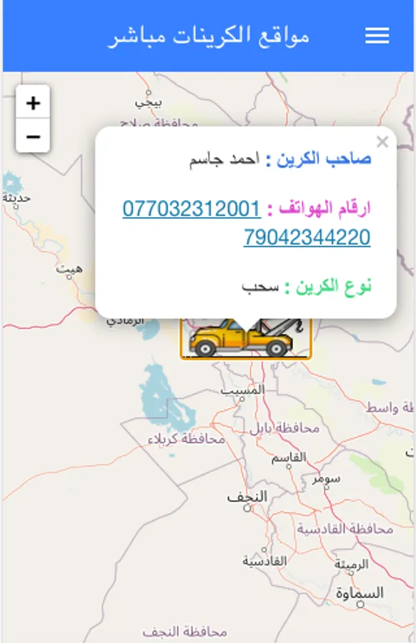 Crane Iraq, a service application that serves all regions of Iraq. Where it is easy for cranes owners to publish its geographical location anywhere in Iraq so that the searcher of the crane can easily find it and contact him directly.