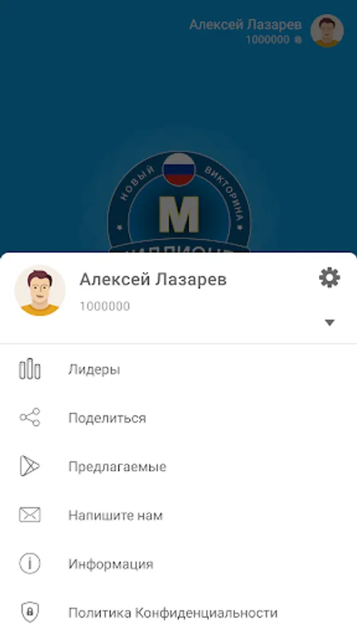 🇷🇺 Millionaire quiz game in Russian language.