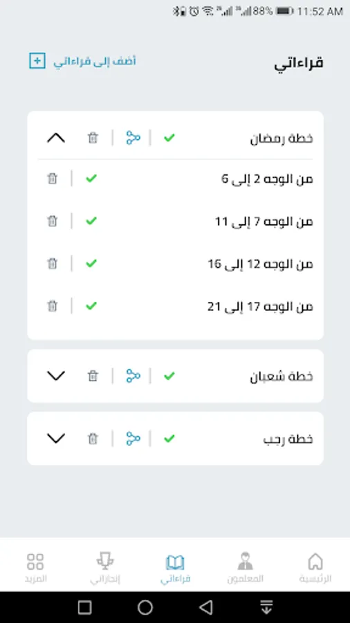 • Memorization :The student can memorize and recite Quran to any of the available teachers at any time.