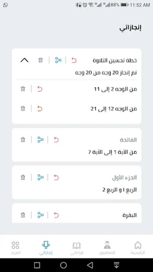 • Recitation Correction : The student can choose any mode of recitation and recite to a teacher who focuses on correcting the provisions and phonetic rules of Quranic recitation.
