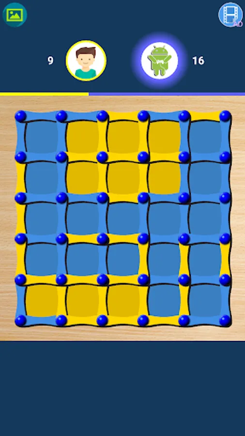 A player who completes the fourth side of a 1×1 box earns one point and takes another turn. The game ends when no more lines can be placed. The winner of the game is the player with the most points.