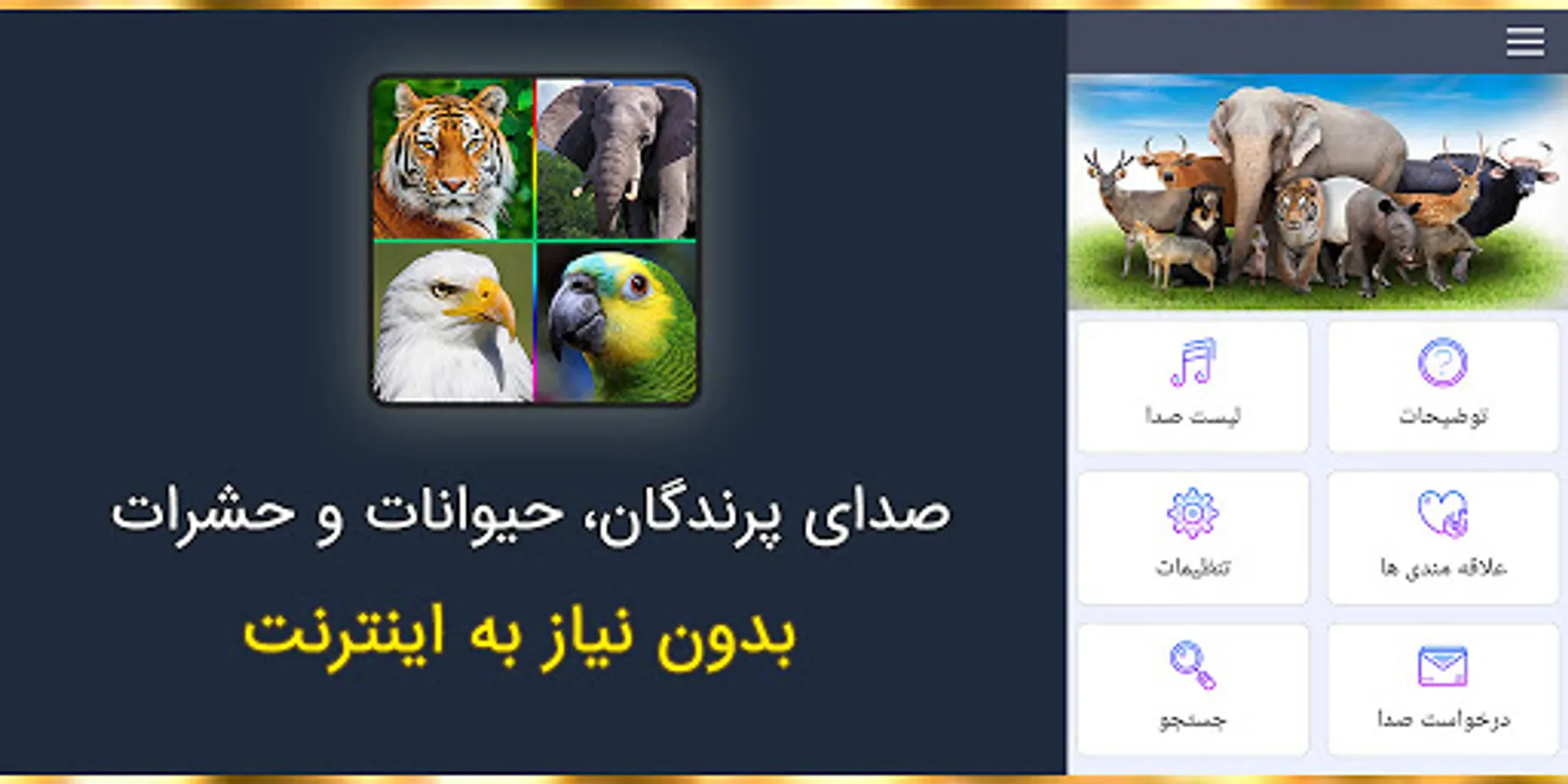 کم A unique collection of animal, bird and insect sounds with text completely free and without the need for internet ✤