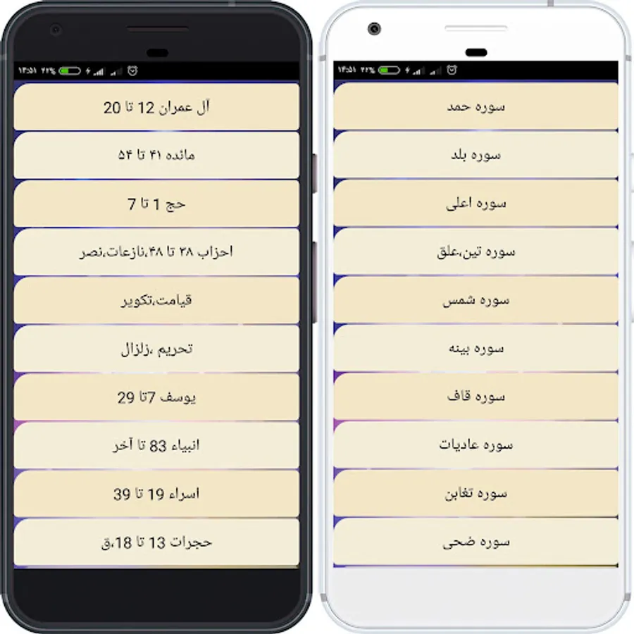 ✔ Possibility to change the font of the text of the verses of the Holy Quran
