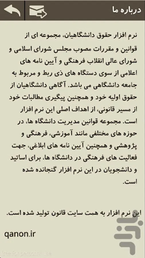 Software academic freedom, a set of rules and regulations adopted by the Parliament and the Supreme Council of the Cultural Revolution and Yyyn a signal from the device is relevant and related to the academic community. Academics awareness of their basic rights and pursue their demands through legal, the main objectives of the software. Management Code universities, in areas such as: education, culture and research, as well as procedures for the notification, for cultural activities in universities, professors and students have been included in this software.