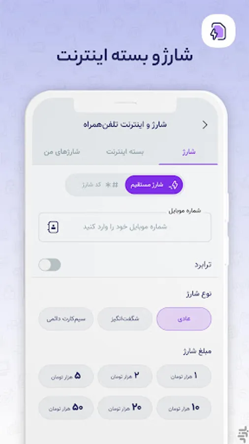 📱شارژ 🌐بسته اینترنت💡پرداختقبض 💳 کارتبهکارت🛫بلیطهواپیما🚘 بیمه خودرو💸نیکوکاری
