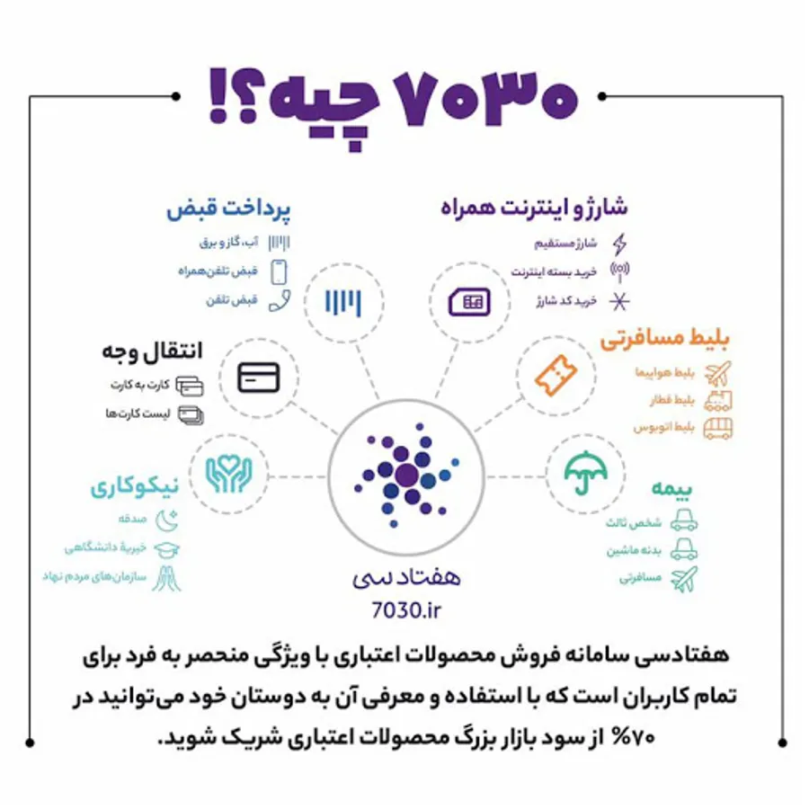 هفتادسی اولین برنامه ای است که 70 درصد از سود بازار بزرگ محصولات اعتباری و خدمات پرداختی را به کاربران خود اختصاص میدهد.