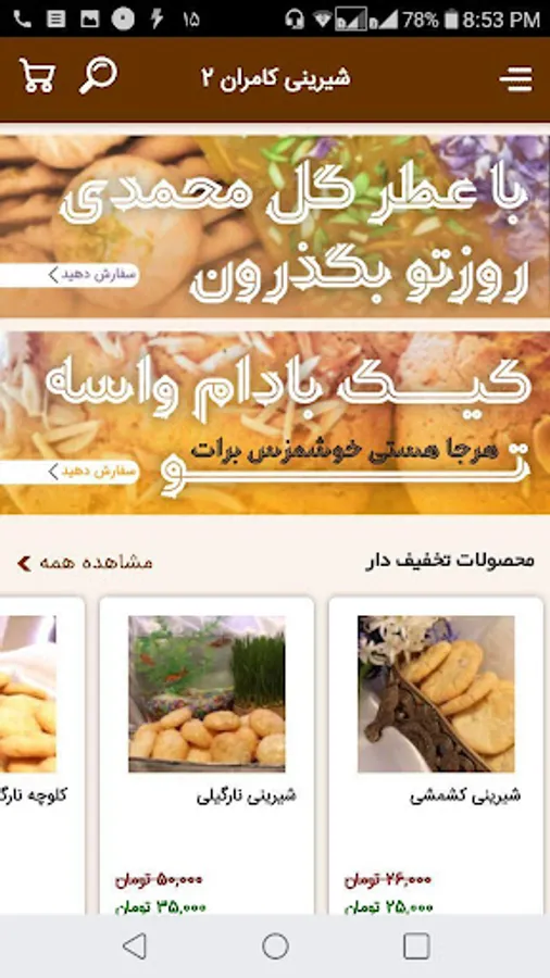 Branch 2: Shiraz - Moshirno St. - Corner of Alley 9, Kamran Sweets 2 - 0713-2355924