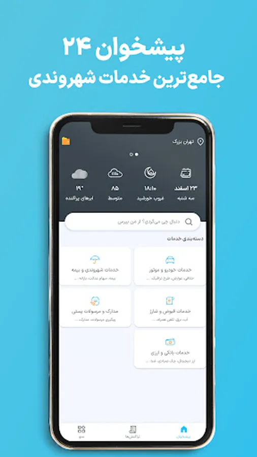 Pishkhan24 gives you a new experience of convenience in inquiry and payment, so that you no longer need multiple applications and can meet all your needs with just one.