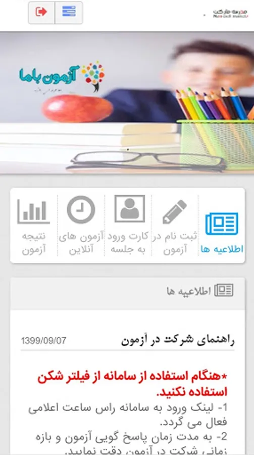 AzmoonBama is a powerful, fast and easy program to provide online test services for students, teachers, counselors and school administrators across the country. In this program, in addition to using test services, you can also download sample exam questions And use.