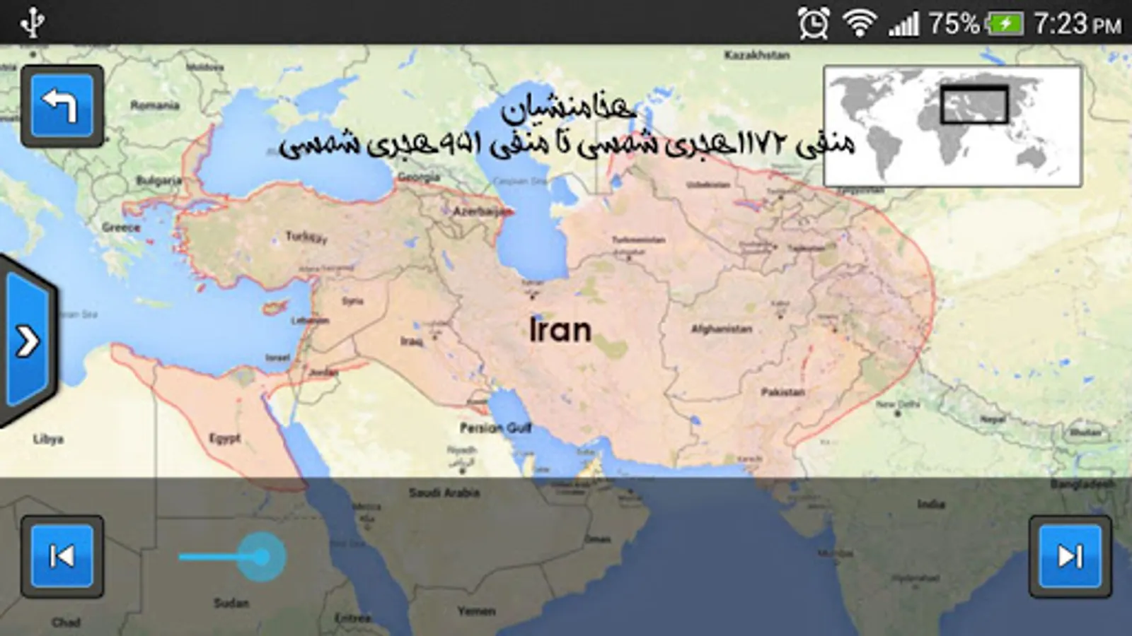 * Watching the territory of Iran over time or in each dynasty.