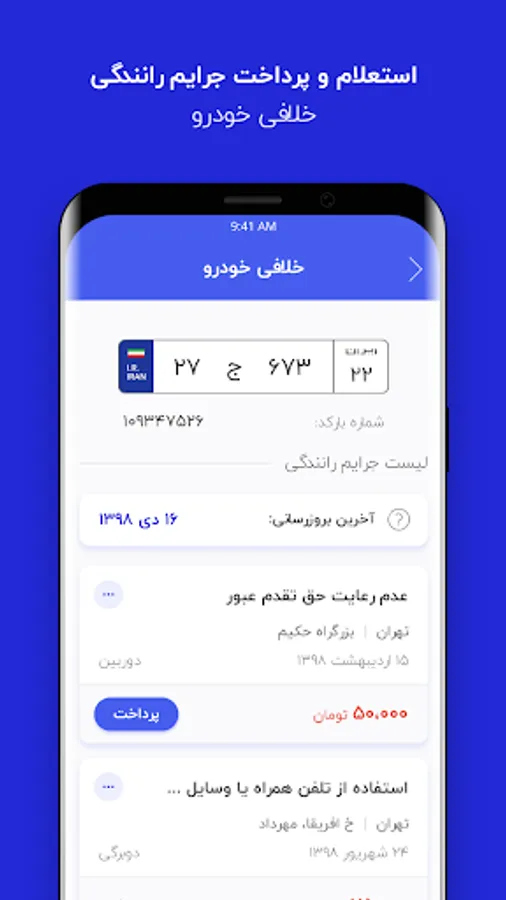 Inquiry and payment of traffic plan debts for vehicles in traffic in Tehran
