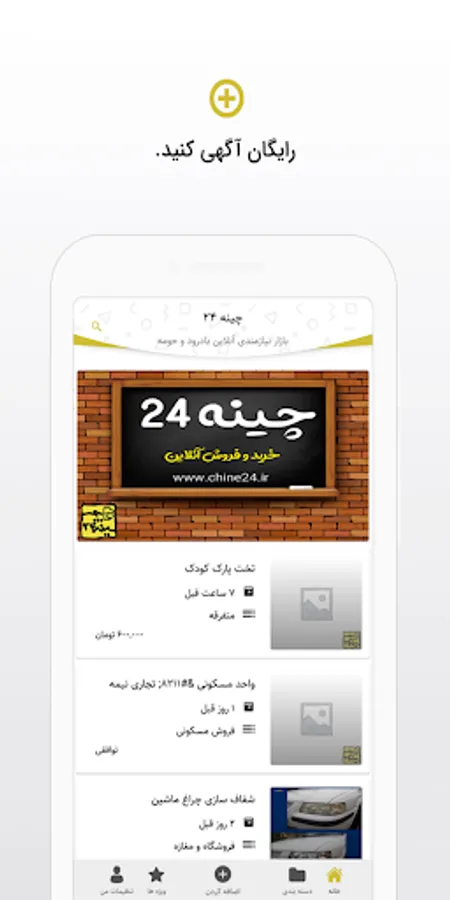 با اپ چینه 24، در هر کدام از شهرستان های بادرود، نطنز، کاشان و اردستان که هستید در کوتاهترین زمان اجناس خود را بفروشید یا کالای موردنظر خود را برای خرید پیدا کنید.