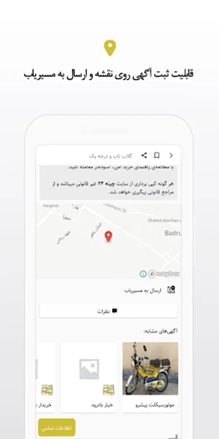- نمایش آگهی روی نقشه و ارسال به مسیریاب