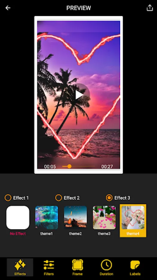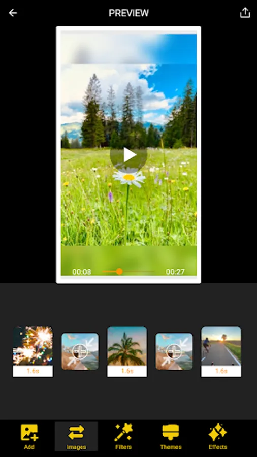 It is one of the most powerful programs for making clips using photos. You just need to select as many photos as you want from the gallery and use the effects inside the program to choose one on your photos. And then a Choose a song from your phone and add it to your photos and that's it. Congratulations, your video is ready.