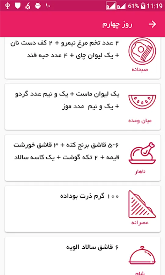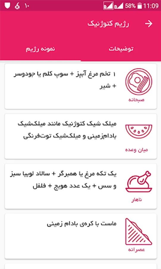 Also included in this program are well-known diets such as Mediterranean diet, vegetarian diet, ketogenic diet, Diet regimen, TLC diet, fertility diet, flat stomach regimen, semi-vegetarian diet, mind diet, Ornish diet regime, Mayo Clinic diet Spark's diet, volume regimen, and Whitwatch regimen with a detailed description (introduction, purpose, dips and non-foods, main foods, benefits, disadvantages ...) along with a dietary specimen.