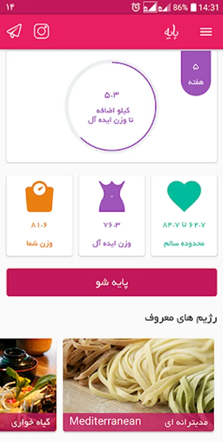 In this program, depending on your physical and physical condition, a well-trained nutritionist will give you a diet for weight loss or obesity. During the diet, you can contact your nutritionist and ask questions and questions. Use the nutrition tips your expert provides.