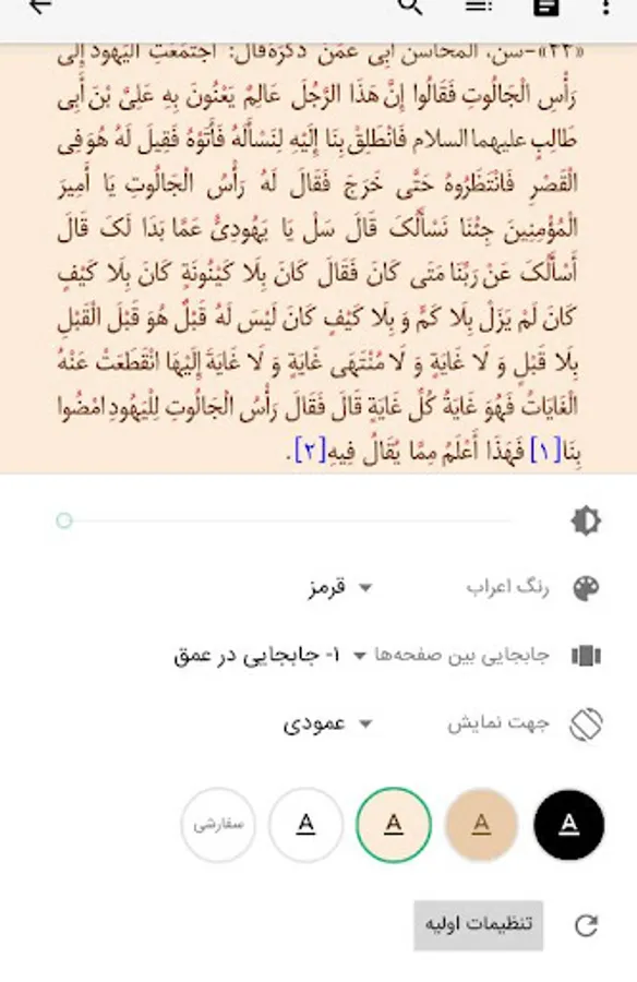 Ability to customize the text by changing the font, text size, changing the page margin, coloring the Arabs