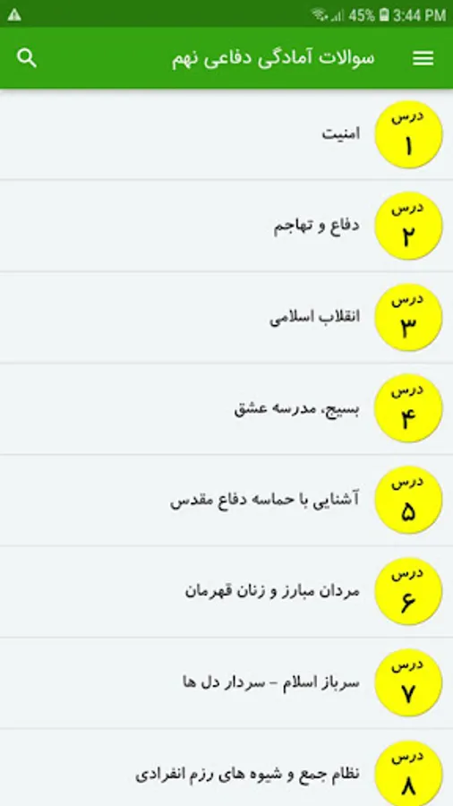 Security / Defense and Invasion / Islamic Revolution / Basijf School of Love / Familiarity with the Epic of Sacred Defense / Fighting Men and Women Heroes / Soldier of Islam - Commander of Hearts / Collective System and Individual Combat Methods / Recognizing and Countering Soft Warfare / Passive Defense Earthquake preparedness and safety