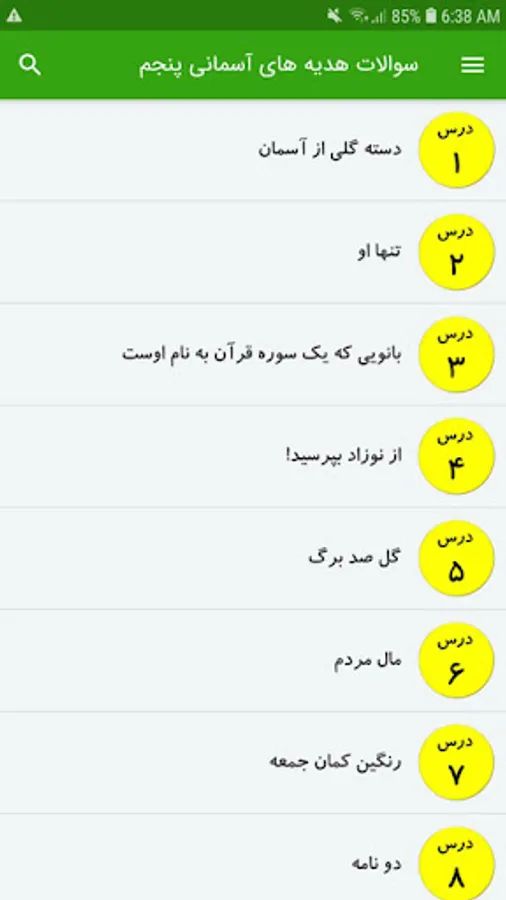 A bouquet from the sky / Only her / Lady who is named after a surah of the Quran / Ask the baby! / Hundred leaves / People's / Rainbow Friday / Two letters / A world of celebration! / On the shores of the Tigris / The proud cypress of Samarra / The sun behind the clouds / Small and large! / The Great Man of History / Avalanche / Wall newspapers / These and them