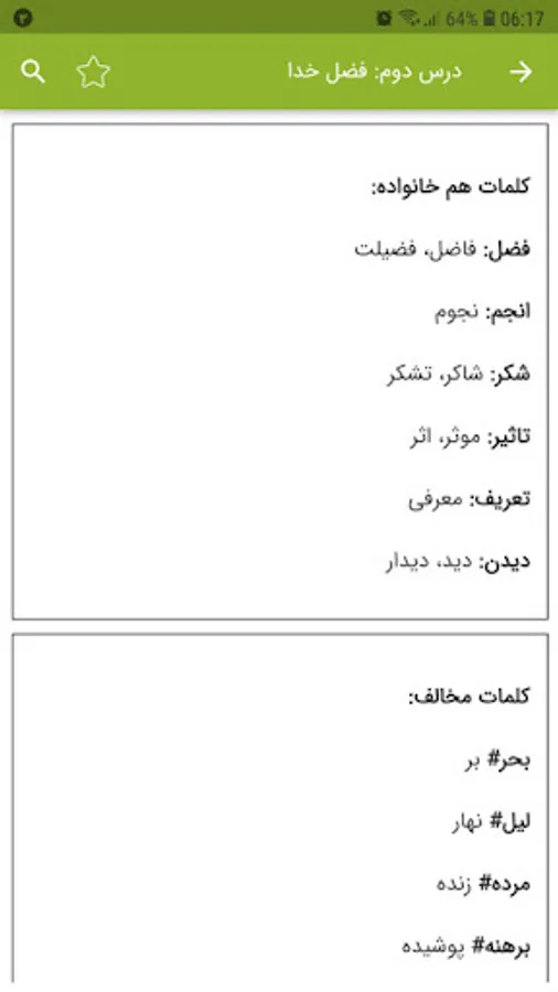 Vocabulary lessons for the fifth grade Persian lesson