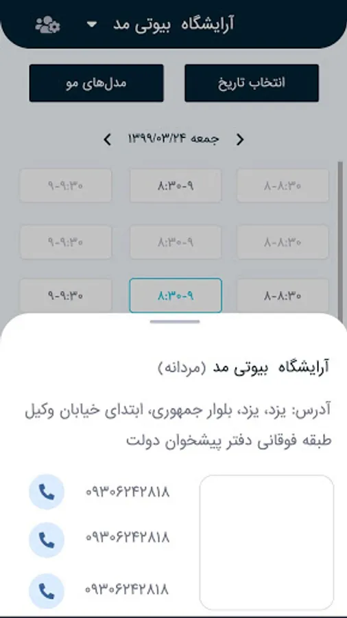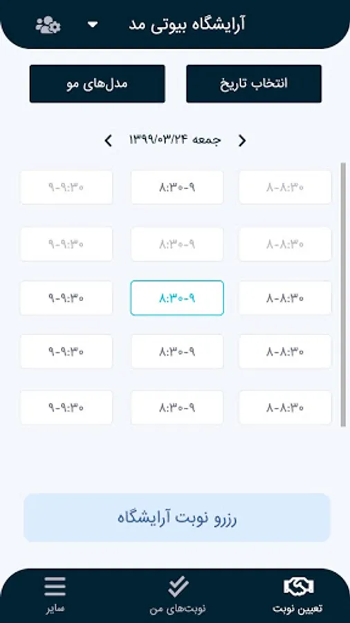در گیسون به راحتی و با انعطاف بالا ساعتهای کاری و نوبتهای خود را تعریف کنید تا مشتریانتون به صورت 24 ساعت نوبتها را مشاهده و از شما نوبت بگیرند!