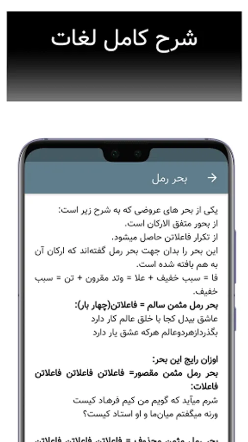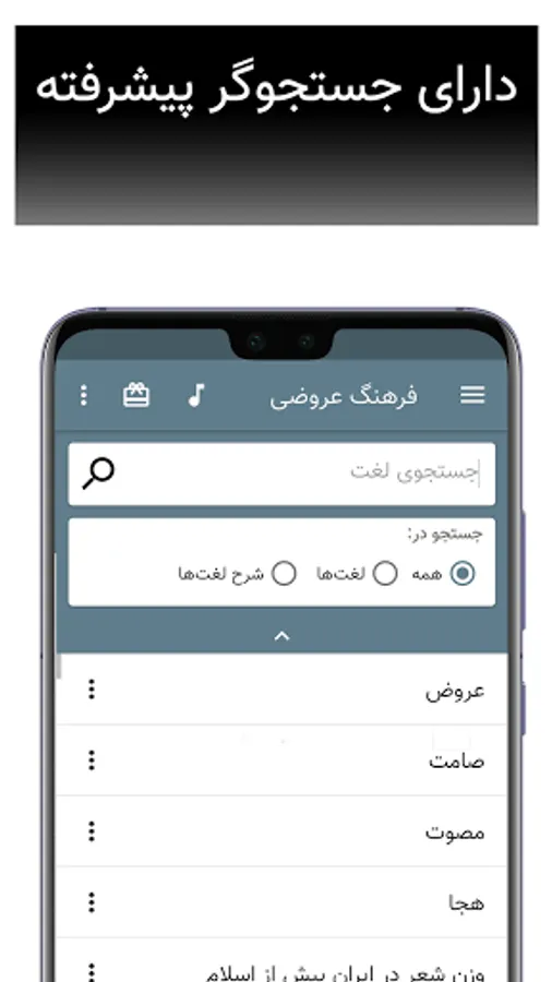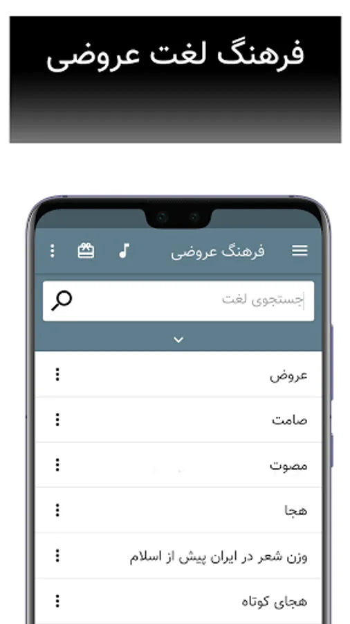 By using the Persian Prosodic Dictionary, you would be able to search about the words related to prosody and rhyme and exactly be familiar with meaning and concept of these words. In this application we have tried to exactly describe the words as much as possible.