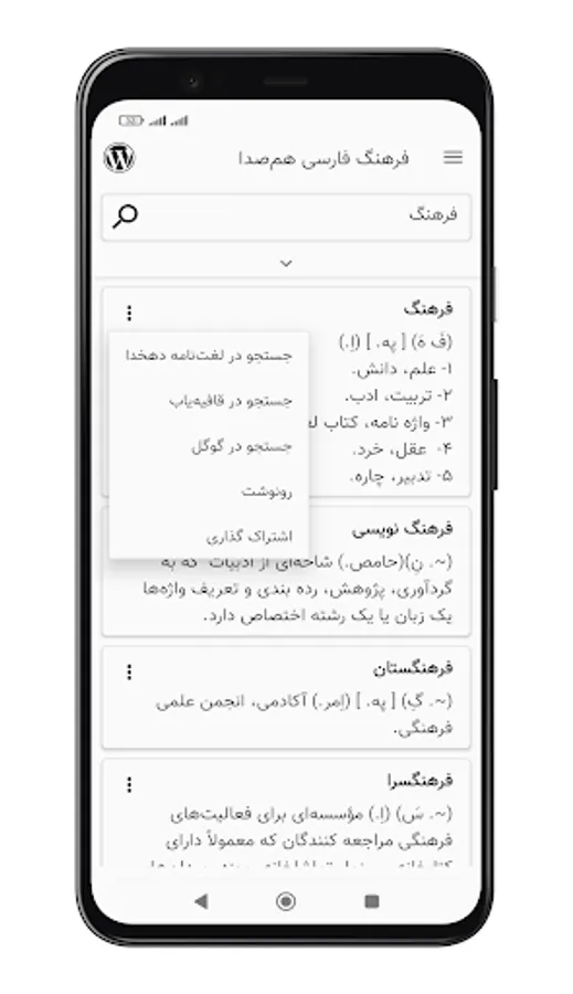 - Ability to search results in Dehkhoda dictionary and rhyme finder online