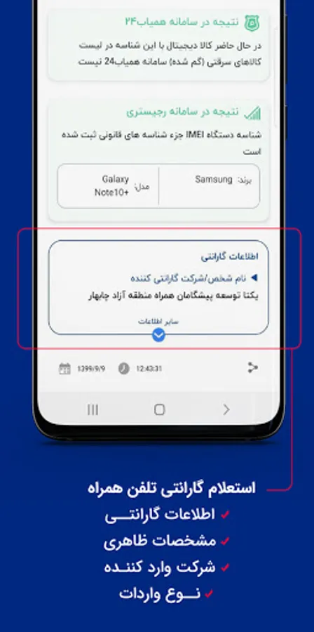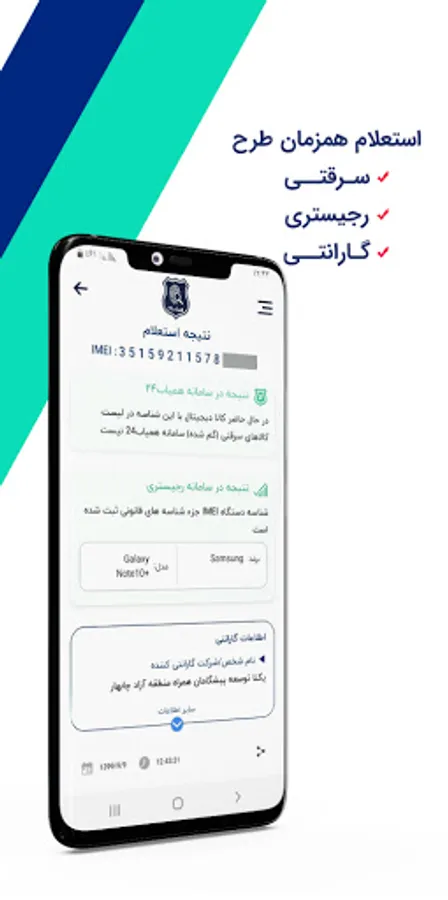 Hamyab 24 is the only application available to inquire about the registry of the phone and inquire about the theft of the phone, tablet and laptop at the same time. When buying digital goods (mobile, tablet and laptop), especially from wall platforms and trumpets, you can with one inquiry, in addition to knowing that the device is not stolen, also make sure it is registered and unwittingly committed Do not commit the crime of buying a stolen item. In the peer system, only registry inquiries are possible.