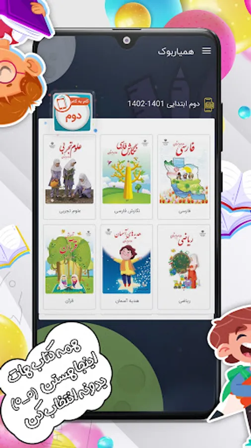 This program from the Hamyarbook series of programs is only dedicated to the second year of elementary school. If you need other courses, see other developer programs.
