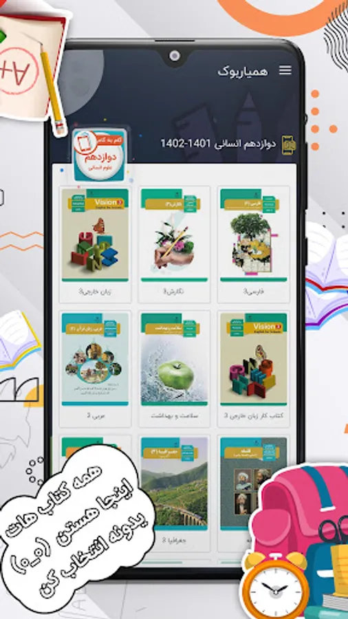 In this version of the Hamyarbook program, we have solved all the exercises, activities, problems, self-tests, experiments, think, text questions, the meaning of the lesson and everything that must be answered in the 12th human textbooks, so that you Don't worry about answering any question.